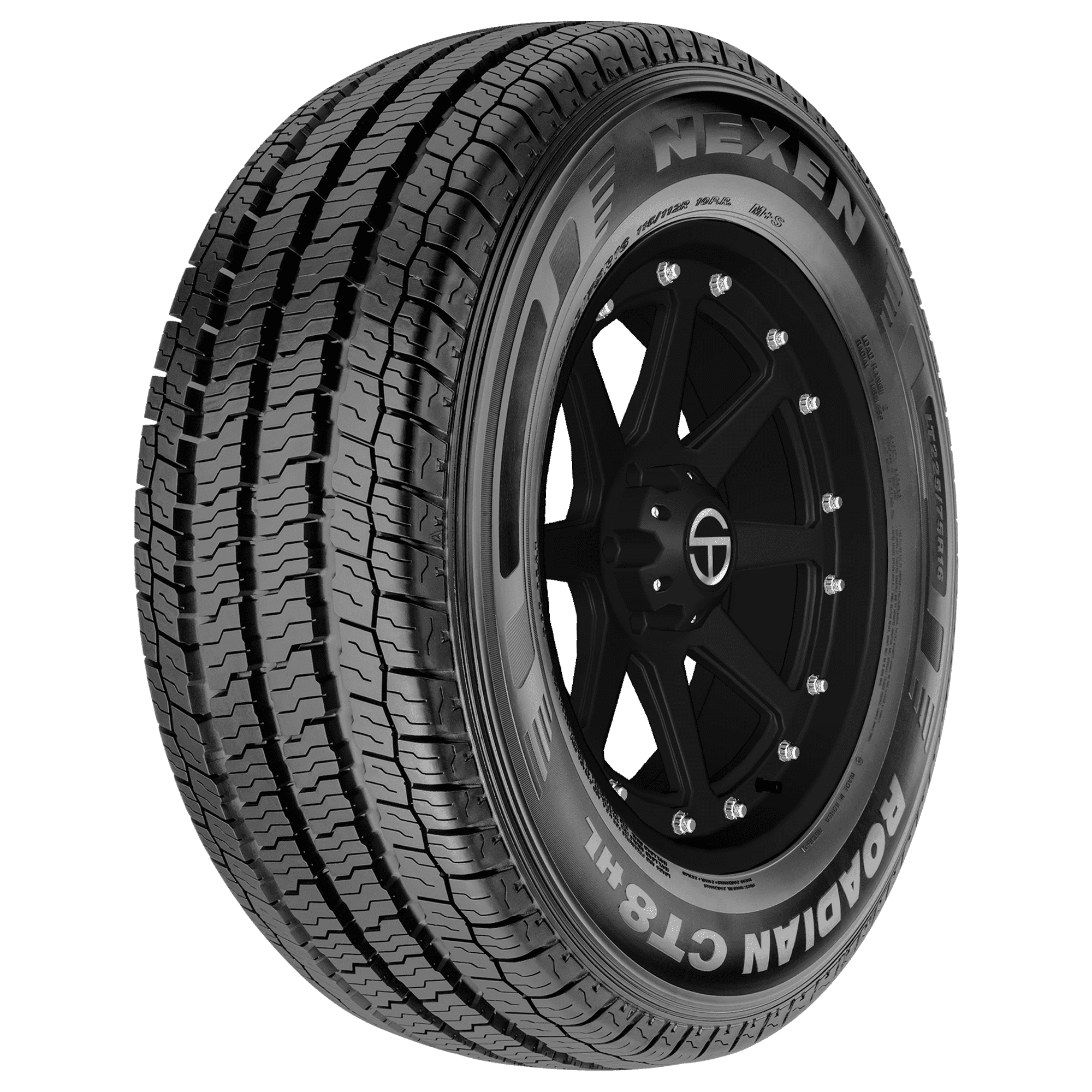 The Roadian CT8 HL from Nexen is an all-season commercial van tire that offers drivers strong performance and a long tread life. Ideal for use on commercial vans and light trucks, the Roadian CT8 HL is Nexen’s all-season highway tire built for comfort, confidence, and a long wear life. A transverse groove at half depth in the center block enhances rigidity to provide exceptional driving stability. The tread is specially designed with square-shaped dimples that prevent block stress, improving durability and tread life. Its rib-type shoulder blocks are capable of carrying heavy loads, while biting edges improve all-season traction. Straight grooves are incorporated for optimum drainage performance on wet roads. – Features include: Covered by Nexen’s best-in-class Total Coverage Warranty which includes 36-months of Roadside Assistance and a 45-day/500-mile Free Trial; All-season tread; Square-shaped dimples reduce stress on the tire for improved tread wear; Black sidewall; Half-depth traverse groove in the center block enhances performance and stability; Backed by Nexen’s Total Coverage Warranty, which includes 36 Months of Roadside Assistance and a 45-day or 500 mile Free Trial; Robust construction allows for heavy-duty performance for commercial vehicles; Features square-shaped dimples that reduce stress on the tire for a longer tread life; Engineered with rib-type shoulder blocks that increase load carrying capacity; Boasts R, S and T-speed ratings; Four wide grooves quickly remove water from the tire to reduce the risk of hydroplaning on wet roads; Dense siping within the tread bites into the road to improve grip on dry, wet, and wintry roads – LT265x75R16 123/120R Nexen Roadian CT8 HL Light Truck Highway Tires, part number 15412NXK | Nexen Roadian CT8 HL Highway Tires in Blackwall, LT265/75R16 123/120R | SimpleTire