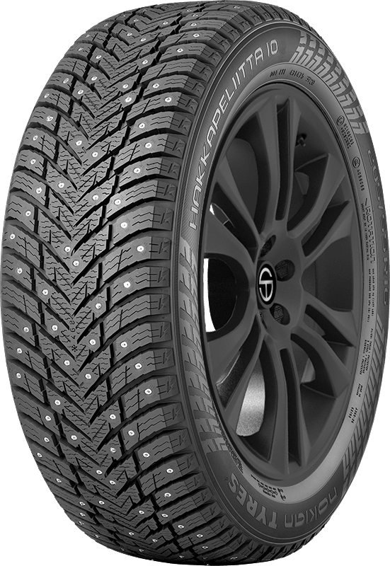 Features include: Three Peak Mountain Snowflake certified; Winter tread design; Utilizes Nokian’s Double Stud Technology to improves traction, grip, acceleration, and braking performance on icy and snowy roads; Black sidewall; Next generation winter rubber compound strengthens winter grip by staying grippy and flexible in freezing temperatures; Pinned with studs to enhance traction, grip, acceleration, and braking performance in winter weather conditions; Low rolling resistance design enhances fuel efficiency and cuts down on harmful emissions; Three Peak Mountain Snowflake symbol means this tire is certified to perform in severe winter weather conditions; Optimized stud placement reduces road noises and creates a smooth, comfortable ride for drivers and passengers.; Designed to give drivers strong stability and precise handling on bare roads – 215/60R16 95T Nokian Hakkapeliitta 10 Passenger Winter Tires, part number TS32761 | Nokian Hakkapeliitta 10 Winter Tires in Blackwall, 215/60R16 95T | SimpleTire