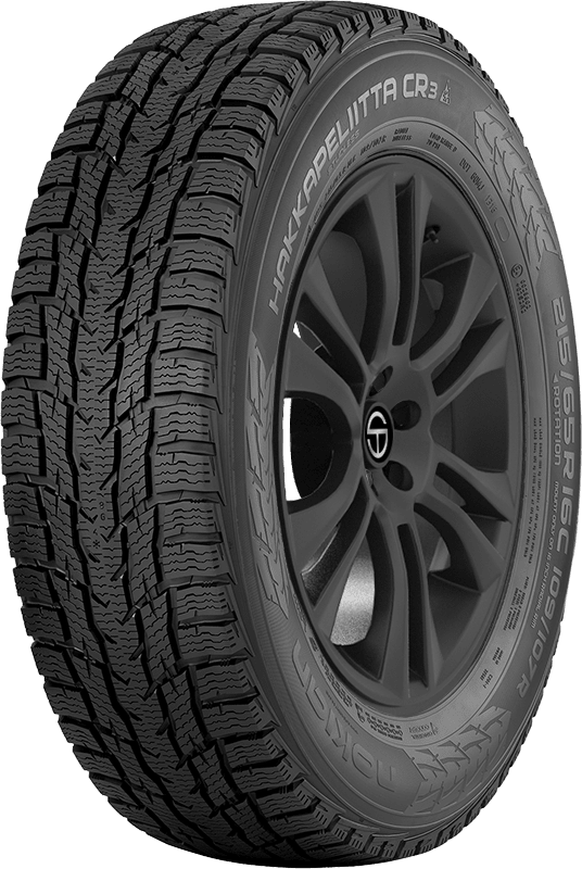 Nokian’s Hakkapeliitta CR3 is a winter tire that’s designed for use on commercial vehicles and offers drivers improved grip on wet and snowy surfaces along with shorter stopping distances. – Features include: Designed for use on service trucks and route vans in winter weather conditions; should not be used when temperatures are consistently above 45 degrees Fahrenheit; Winter tread design; Three Peak Mountain Snowflake certified; Black sidewall; Aramid-reinforced sidewall protects the tire against cuts, chips, and abrasions; Three Peak Mountain Snowflake symbol means this tire is certified to perform in severe snow conditions; Aggressive, directional tread pattern enhances traction and handling performance; Eco-friendly rubber compound keeps the tire flexible for use in subfreezing temperatures – 205x70R15C 106/104R Nokian Hakkapeliitta CR3 Light Truck Winter Tires, part number T429097 | Nokian Hakkapeliitta CR3 Winter Tires in Blackwall, 205/70R15C 106/104R | SimpleTire