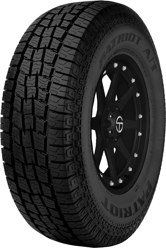 Features include: Designed for use on light trucks and SUVs; All-terrain tread; Optimized shoulder block that enhances traction and steering stability on- and off-road; Black sidewall; Innovative, irregular sipe design increases traction in wet and dry conditions while also strengthening cornering grip.; Built with a strong rib and block design that improves steering capabilities; Four wide longitudinal grooves with a staggered block pattern boost all-terrain performance; Finding a tire that performs on any terrain is a must for some drivers, and light truck and SUV drivers are no different. Fortunately, all-terrain tires are designed to give drivers strong traction and performance on- and off-road, and the AT from Patriot does that and more. Built with an optimized shoulder block that enhances traction and steering stability on- and off-road, the AT’s innovative, irregular sipe design increases traction in wet and dry conditions while also strengthening cornering grip. Four wide longitudinal grooves with a staggered block pat – LT245x75R16 120/116S Patriot AT Light Truck All Terrain Tires, part number RSD0067 | Patriot AT All Terrain Tires in Blackwall, LT245/75R16 120/116S | SimpleTire