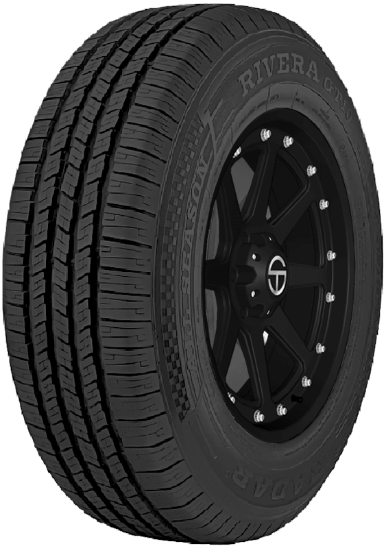 Designed for on- and off-road use, the Rivera A/T from Radar is an all-terrain tire that offers drivers steering stability and traction in mud and snow. Ideal for use on light trucks and SUVs, the Rivera A/T’s irregular sipe design also provides strong traction and cornering grip in wet and dry conditions. – Features include: Designed for use on SUVs and light trucks; Four wide longitudinal grooves and a staggered block pattern enhance all terrain performance; Shoulder block design is optimized to improve steering stability and traction in on- and off-road conditions; Strong rib and block design improve traction and steering stability in mud and snowy conditions; Irregular sipe design also provides strong traction and cornering grip in wet and dry conditions – 275x60R20 119H Radar Rivera A/T Light Truck All Terrain Tires, part number RASYTH0220 | Radar Rivera A/T All Terrain Tires in Blackwall, 275/60R20 119H | SimpleTire
