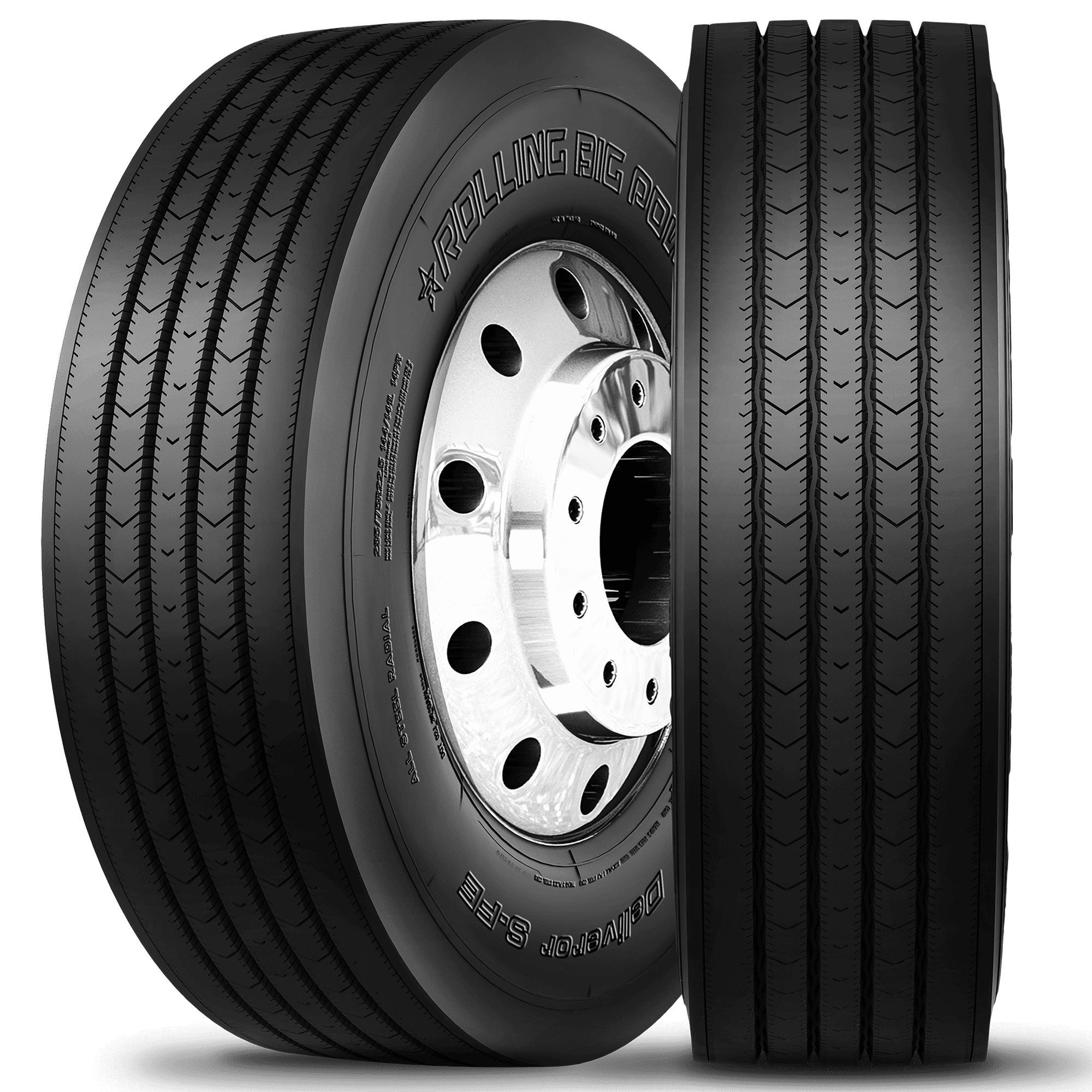 Features include: Long-haul steer axle tire is suitable for use on commercial trucks and buses; Long-haul, steer axle tire suitable for use on commercial trucks and buses; Advanced rubber compound reduces rolling resistance for increased fuel efficiency; Innovative siping and defense grooves promote long and even tread wear; Innovative siping and defense grooves offer long and even tread wear; Strong and durable casing provides better impact resistance and improves load-carrying capacity; Micro siping across the tread improves traction and stability for solid year-round performance; Micro siping across the tread improves traction and stability for a solid year-round performance – 11/R22.5 148/145L RBP Deliveror S-FE Commercial Tires, part number RBP1063781256 | RBP Deliveror S-FE Trailer Tires in Blackwall for Commercial Vehicle, 11/R22.5 148/145L | SimpleTire