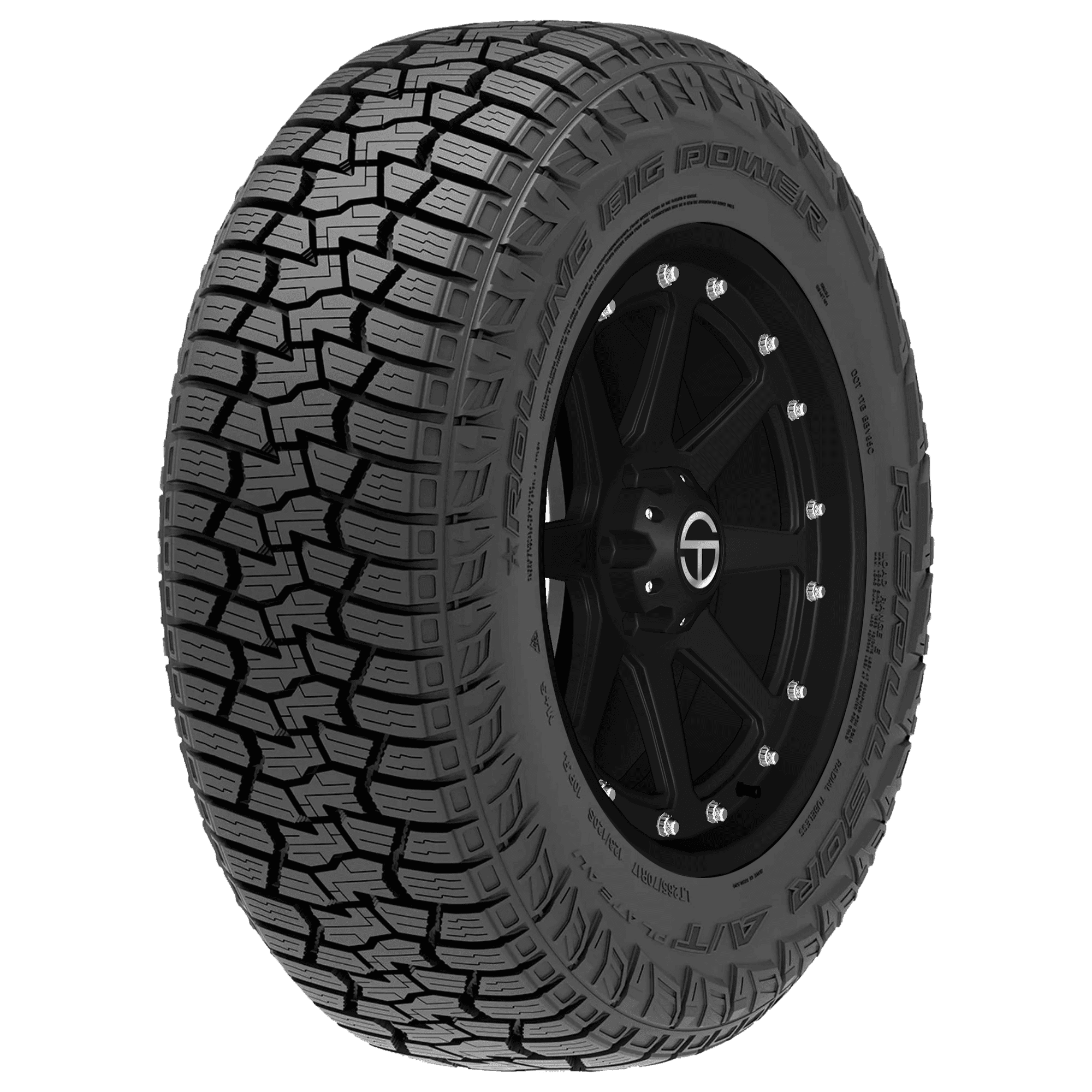 Features include: Backed by 50,000 mile limited manufacturer tread life warranty; Three Peak Mountain Snowflake certified for severe winter performance; Saw tooth groove edges and dense sipes for improved grip and traction in different driving conditions; Durable rubber compound resists cuts, chips, and abrasions; Designed to suit various applications from rocky terrains to muddy trails and snowy roads – LT255x80R17 123/120S RBP Repulsor A/T Plateau Light Truck All Terrain Tires, part number RBPSMPAT1780020 | RBP Repulsor A/T Plateau Tires in Blackwall, LT255/80R17 123/120S | SimpleTire