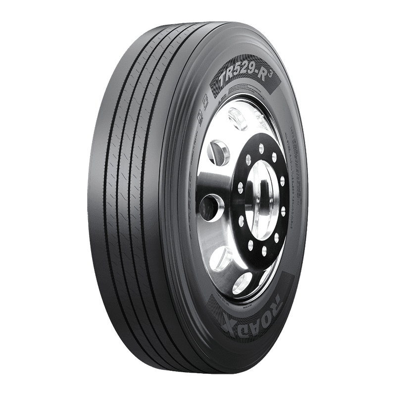Features include: Designed for use on the trailer axle of semi-trucks; All-season tread design for year-round traction and performance; Low rolling resistance design enhances fuel efficiency; Decoupling groove prevents irregular wear; Suitable for single or tandem trailers – 295/75R22.5 144/141M RoadX TR529 R3 Commercial Tires, part number 9630766V | RoadX TR529 R3 Trailer Tires in Blackwall for Commercial Vehicle, 295/75R22.5 144/141M | SimpleTire