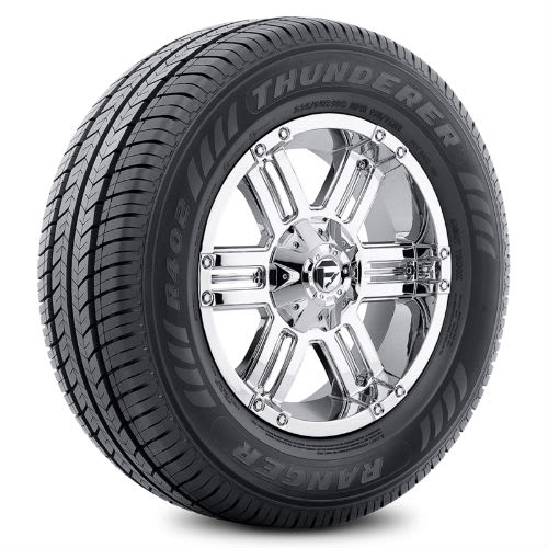 Featuring an all-season tread design, the Ranger R402 tire from Thunderer boasts excellent braking performance in addition to enhanced steering response and strong wet traction. – Features include: Designed for use on service trucks and route vans; Twin steel belted construction enhances strength and durability for a higher load carrying capacity and a longer tread life; Reinforced sidewall protects the tire against scuffs, chips, and abrasions; All-season tread pattern for year-round traction and handling performance; Low rolling resistance design enhances fuel efficiency – 235x65R16C 115/113R Thunderer Ranger R402 Light Truck All Season Tires, part number TH0426 | Thunderer Ranger R402 All Season Tires in Blackwall, 235/65R16C 115/113R | SimpleTire