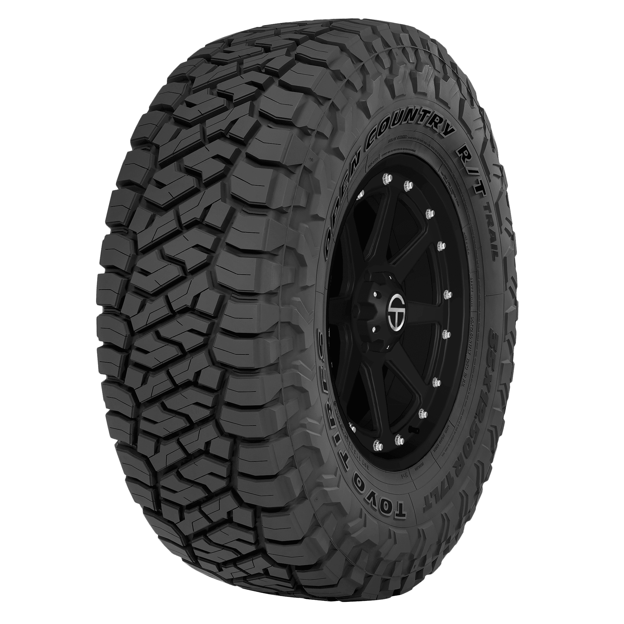 Features include: Designed for use on light trucks and SUVs; Rugged-terrain tread; Extra-thick shoulder and sidewall lugs offer better grip and impact and puncture resistance; Black sidewall; Optimized tread pattern with large blocks for durability, traction, and stability; 45,000 mile limited manufacturer tread life warranty; Staggered scalloped shoulder blocks offer more digging power in sand, mud, or uneven surfaces; Three variable pitch pattern reduces noise and improves ride comfort – LT285x60R20 125/122R Toyo Open Country R/T Trail Light Truck Rugged Terrain Tires, part number 354340 | Toyo Open Country R/T Trail Rugged Terrain in Blackwall, LT285/60R20 125/122R | SimpleTire