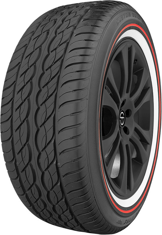 Features include: Exclusive Whitewall with a red stripe; All-terrain tread; Stylish white sidewall with a red stripe; All-Season Mud and Snow Rating; Backed by a 60,000 mile limited manufacturer tread life warranty; Touring Tire Ride Quality; Features an innovative tread pattern that reduces road noises for drivers and passengers; Long Tread Life – 235x55R17 99H Vogue Custom Built Radial SCT Red Stripe Light Truck All Season Tires, part number 2180931 | Vogue Custom Built Radial SCT Red Stripe Tires, 235/55R17 99H | SimpleTire