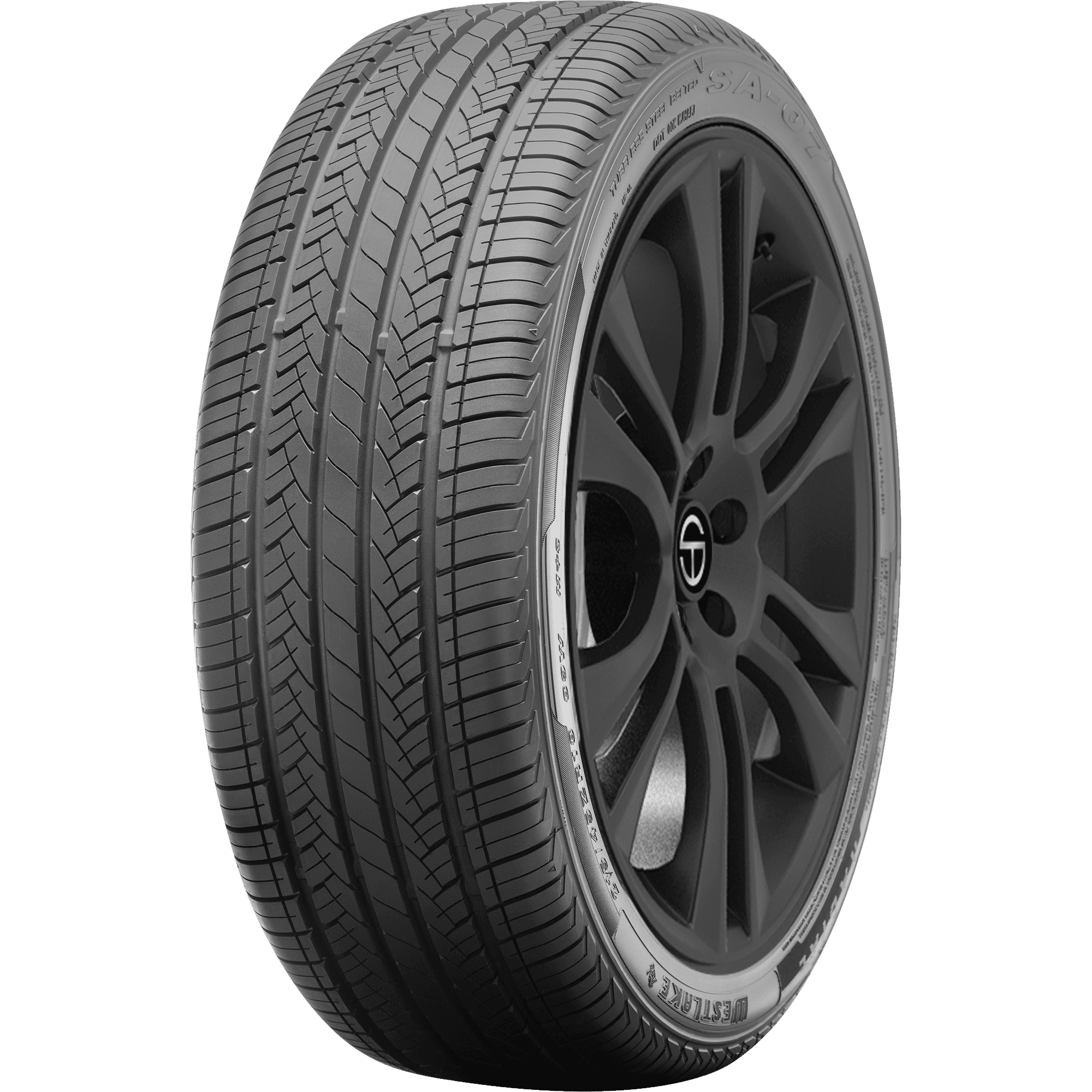 The Westlake SA07 is an enhanced performance sports tire built for all-season performance. Sedans, CUVs, and touring cars are some of the vehicles for which you can find SA07 tire sizes. You will enjoy an improved ride as the SA07 are optimized to give you better handling and stability. The tread is designed with circumferential channels to provide you with lateral stability and precise responsiveness, this also increases the rapid expulsion of water from the tire so that your grip stays firm and strong through a variety of weather conditions and seasons. There are large outside shoulder blocks and deep tread grooves for the times when you really need to keep tires gripping the road. The all-season siping enhances tread life which means more tire for your dollar. Additionally, it improves handling to give you more fun behind the wheel. The enhanced tread compound contains silica to provide a lower rolling resistance in wet conditions and better fuel efficiency. – Features include: Designed for use on performance-oriented coupes, sedans, and CUVs; Backed by a 45,000 mile limited manufacturer tread life warranty; Symmetrical tread pattern enhances traction while also allowing the tire to be freely rotated for a longer tread life; Rigid center rib with minimal siping increases stability and control; Cross grain siping pattern promotes even treadwear while also boosting traction – 245/55R18 103W Westlake SA07 Sport Passenger All Season Tires, part number 24374502 | Westlake SA07 Sport All Season Tires in Blackwall, 245/55R18 103W | SimpleTire