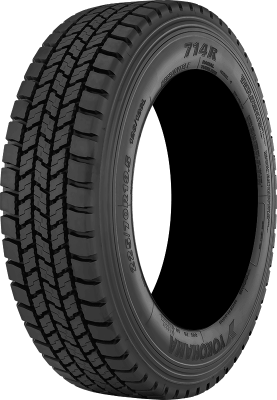 Features include: Designed for use on the drive axle of semi-trucks in local and regional pickup and delivery work; Open shoulder grooves help boost traction in wet or wintry conditions; Wide tread pattern with tie bars to reduce tread squirm and promote long, even wear; Stone ejectors built into tread grooves that protect the casing from damage for a longer tread life; Advanced tread compound for long life, heat dissipation, low rolling resistance – 225/70R19.5 128L Yokohama 714R Commercial Tires, part number 120171401 | Yokohama 714R Trailer Tires in Blackwall for Commercial Vehicle, 225/70R19.5 128L | SimpleTire