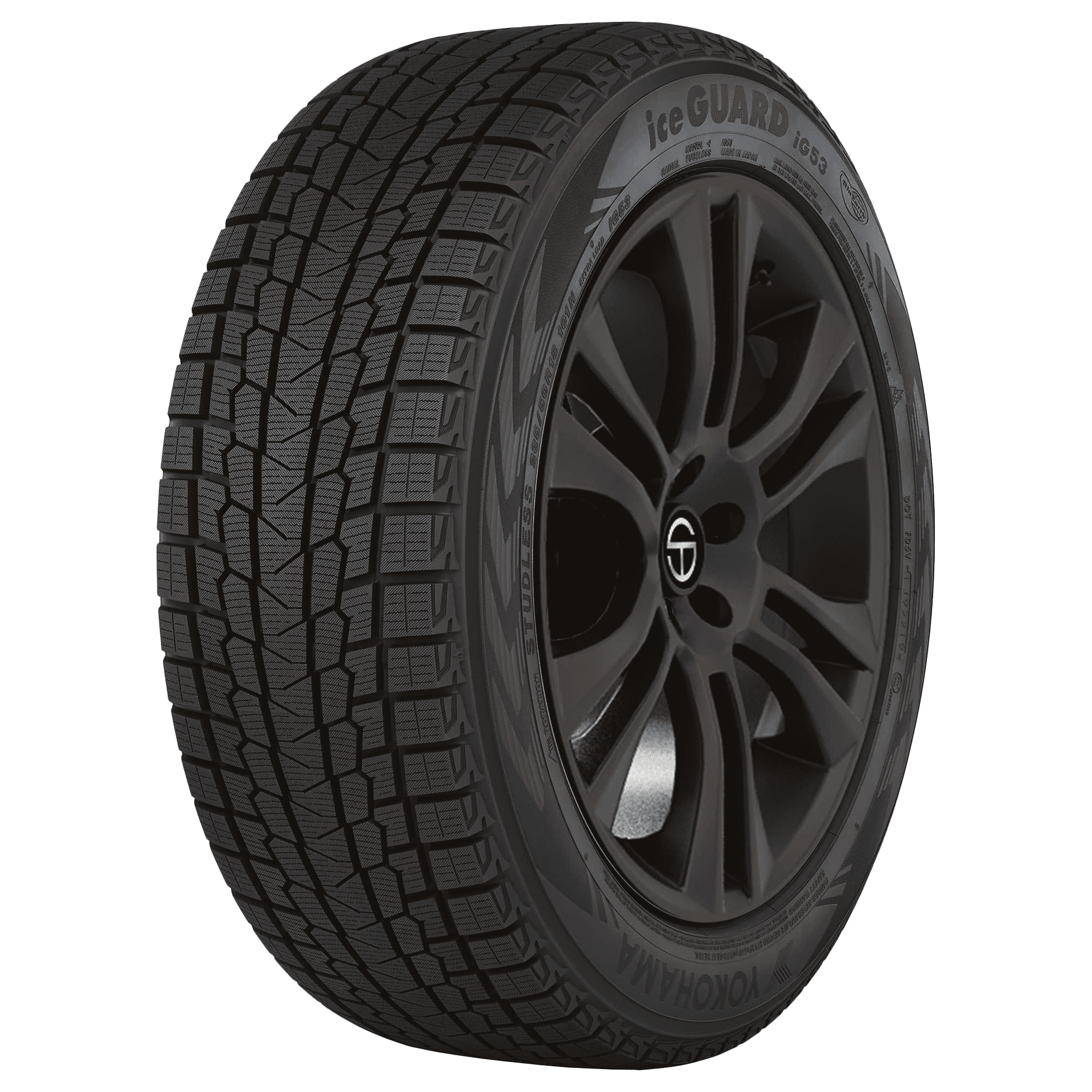 Yokohama’s Iceguard iG53 is a winter tire that’s designed for use on passenger cars and minivans and offers drivers strong traction in icy and snowy conditions. – Features include: Covered by Yokohama Promise standard warranty, which includes a 30-day trial satisfaction guarantee; Winter tread; should not be used when temperatures are consistently above 45 degrees Fahrenheit; Triple 3D sipes, micro diagonal grooves, and zigzag-shaped circumferential grooves increase traction and grip on snow and ice; Black sidewall; Absorptive tread compound removes water film for increased grip on icy surfaces; Three Peak Mountain Snowflake certified for use in severe winter weather conditions; Backed by Yokohama Promise 30-Day Trial Satisfaction Guarantee; Low-heat generating under-tread compound increases tread stiffness for low rolling resistance and better fuel efficiency; Optimized symmetrical tread design reduces road vibrations for improved ride comfort; Distinctive uni-directional tread design provides better handling in all wintry conditions – 215/55R18 95H Yokohama iceGUARD iG53 Passenger Winter Tires, part number 110115343 | Yokohama iceGUARD iG53 Winter Tires in Blackwall, 215/55R18 95H | SimpleTire